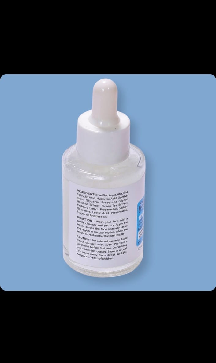 GlowRefine is a powerful yet gentle exfoliating serum crafted with 5% Glycolic Acid (AHA) and 2% Salicylic Acid (BHA) to renew dull, congested skin. AHAs remove dead skin cells from the surface, while BHAs penetrate deep into the pores to clear blackheads and excess oil. Enriched with soothing ingredients like green tea and aloe vera, this formula delivers smooth, glowing skin without irritation. Use 2–3 times a week in your nighttime routine to minimize texture, even tone, and improve skin clarity. Always follow with sunscreen the next morning.